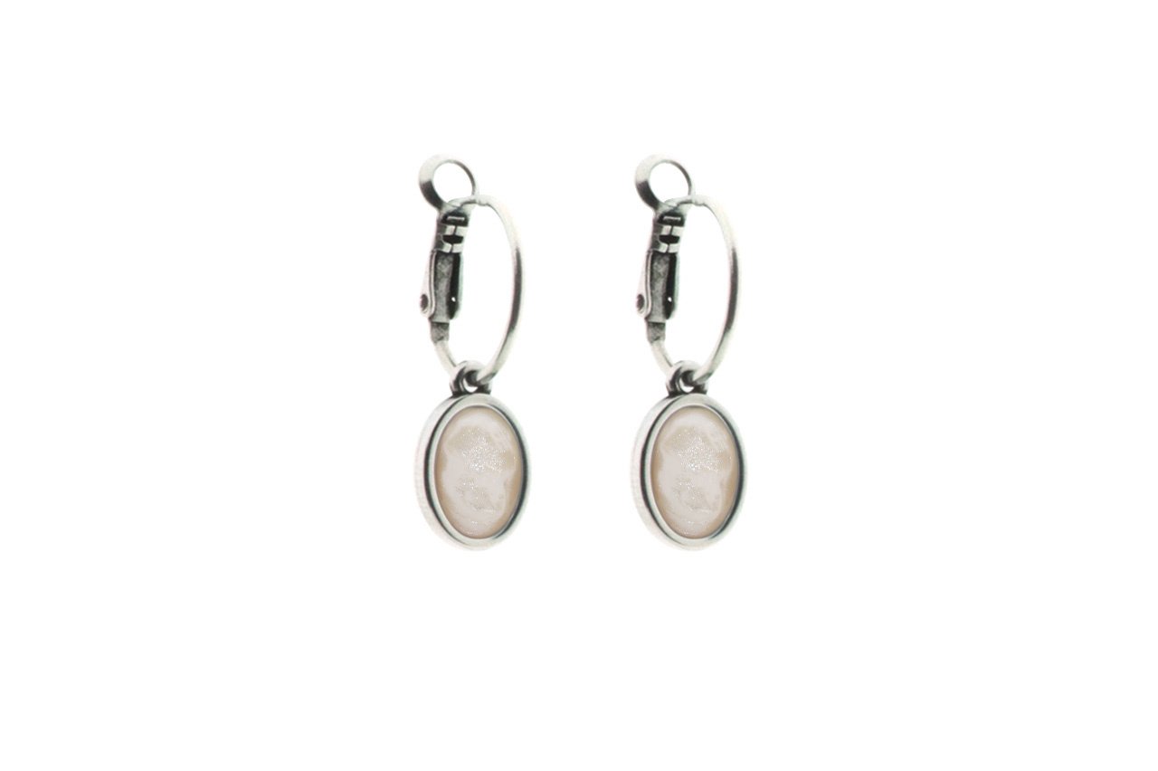 Mittig aufgehangen und ebenfalls in Zamac eingefasst, hängt ein ovaler farbiger Cabochon - und du kannst die Farbe des Cabochons selbst bestimmen.