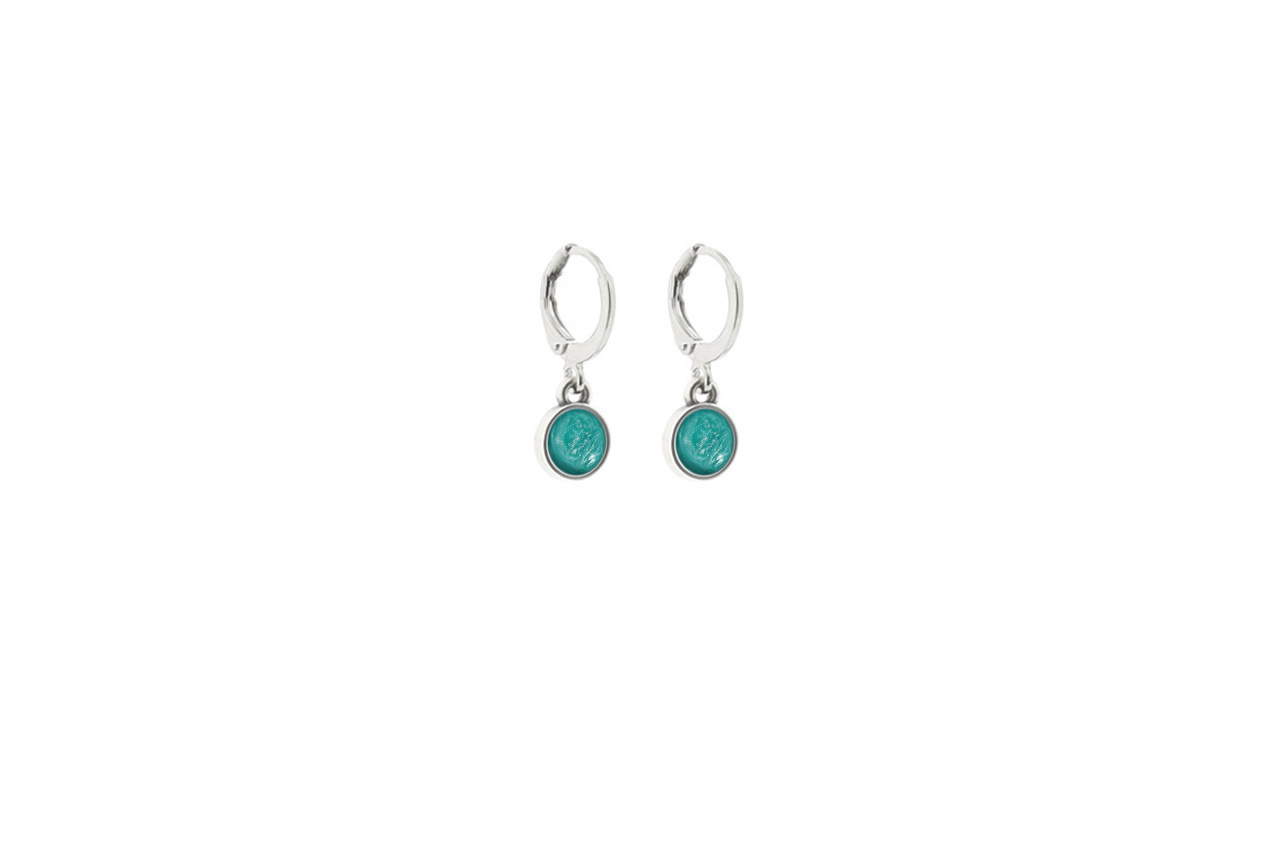 Mittig aufgehangen und ebenfalls in Zamac eingefasst, hängt ein farbiger Cabochon - und du kannst die Farbe des Cabochons selbst bestimmen (Auswahl aus 15 Farben).