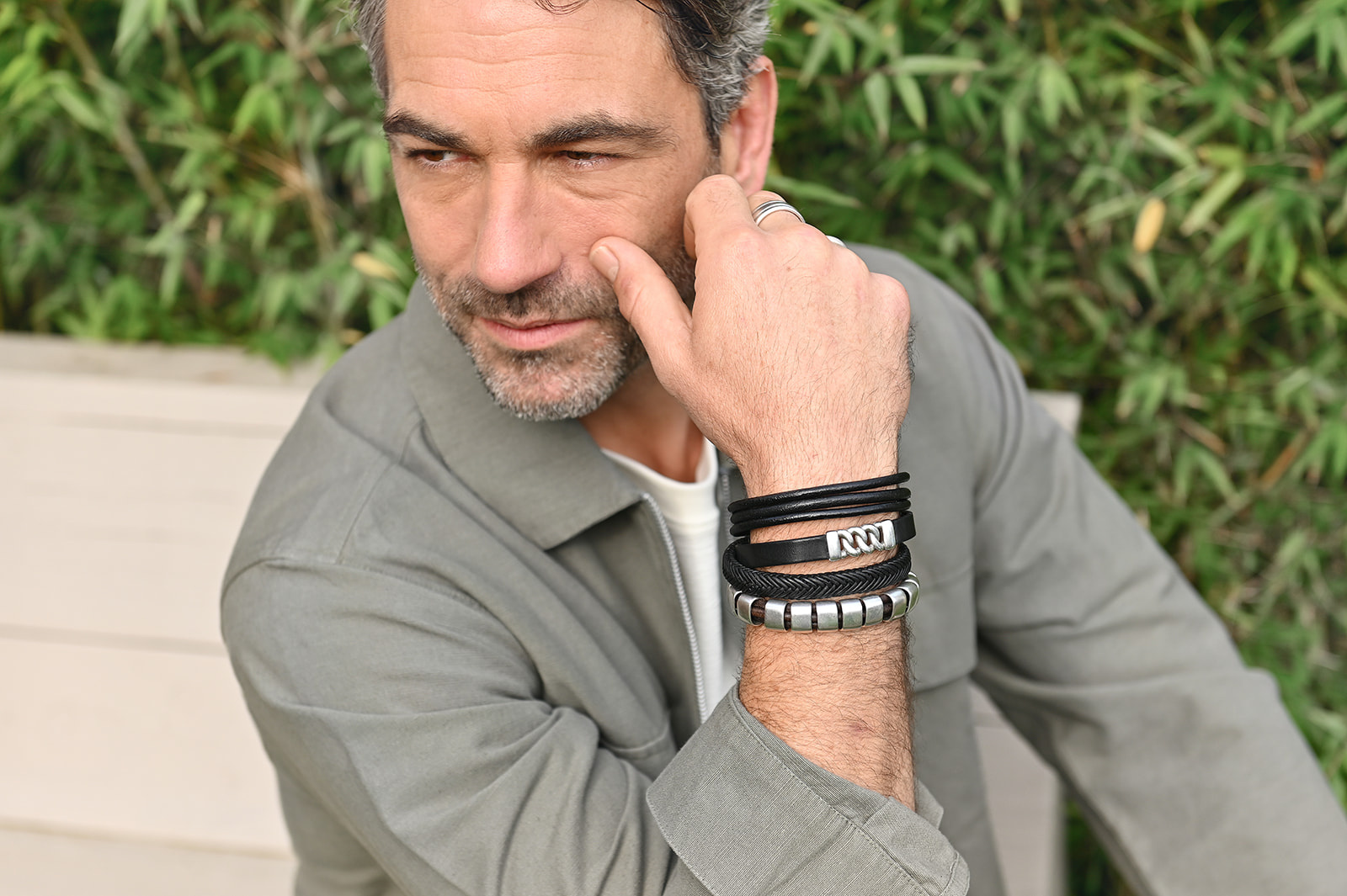 Das Armband WOUT besteht aus drei Reihen hochwertigem, anschmiegsamem Büffelleder. Auf der Rückseite des Armbands werden die Lederbänder zusammengeführt und enden in einem Magnetverschluss, der dem Armband sicheren Halt gibt.