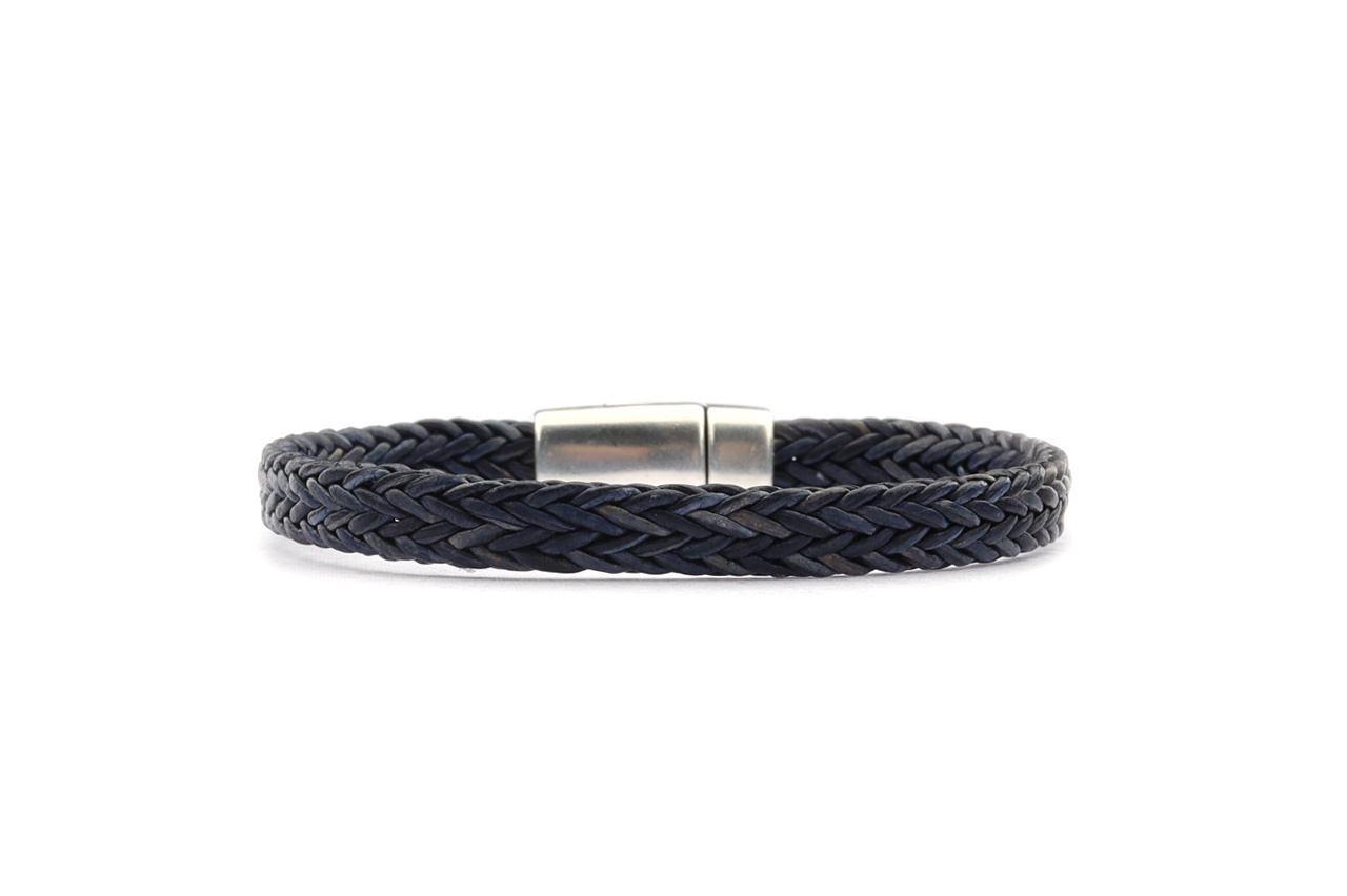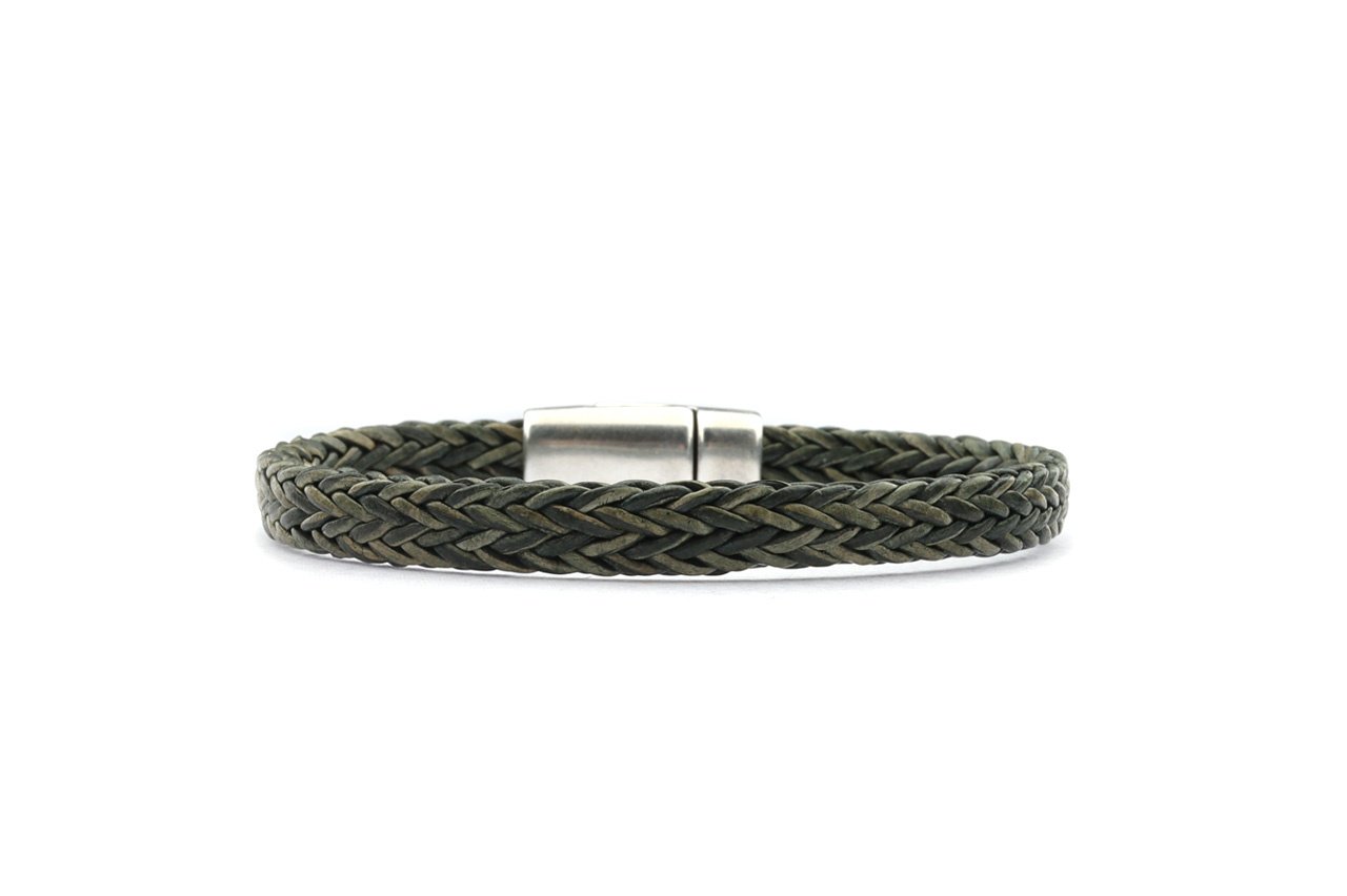 A thick, braided leather bracelet fitted with a silver-tone, high-quality, nickel-free magnetic clasp. The braid is approximately 8mm wide.