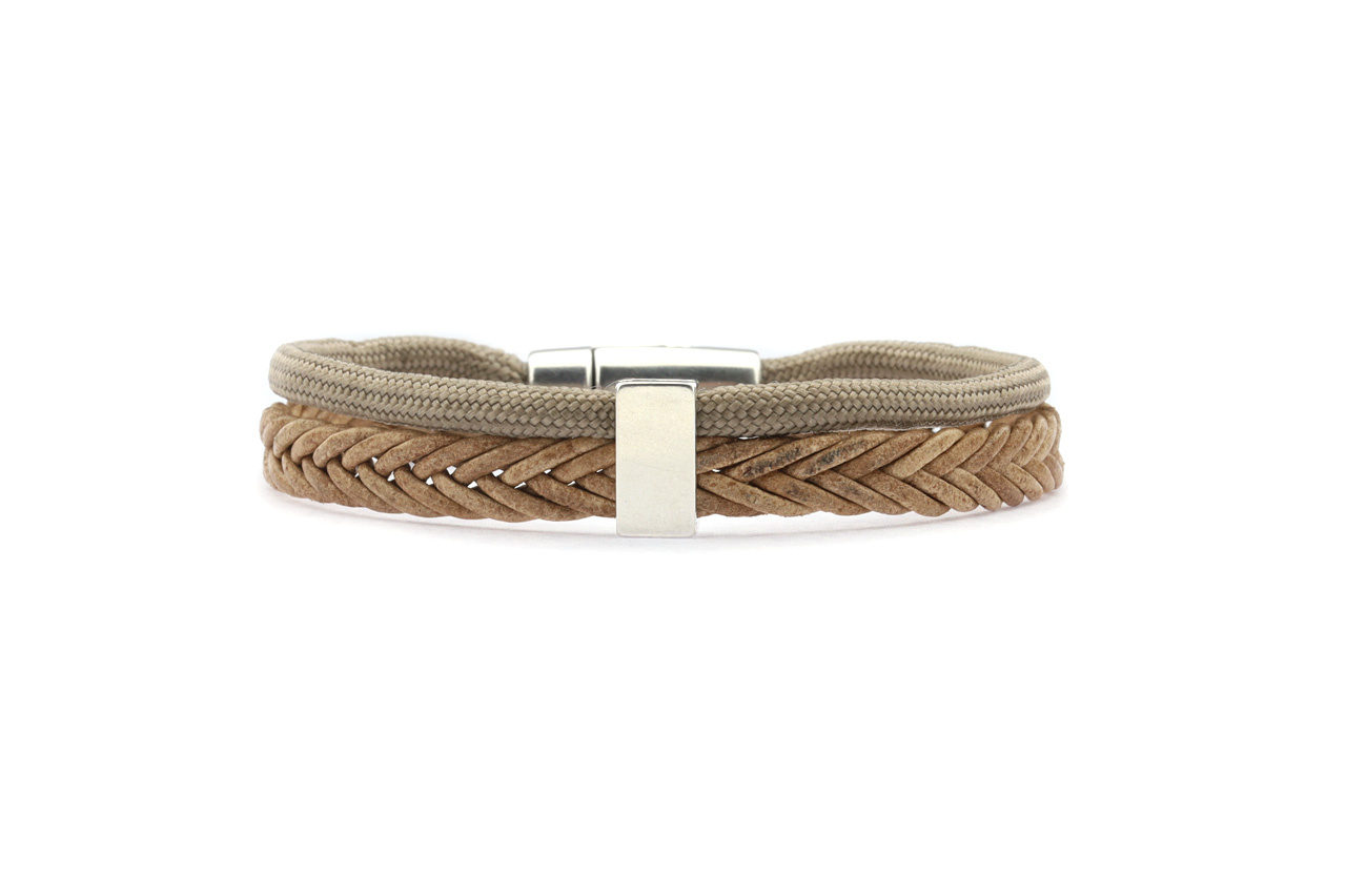 • A bracelet made from a leather braid with paracord held together by a silver-coloured slider. The bracelet closes with a silver-coloured, high-quality, nickel-free magnetic clasp. The bracelet is approximately 10 mm wide.