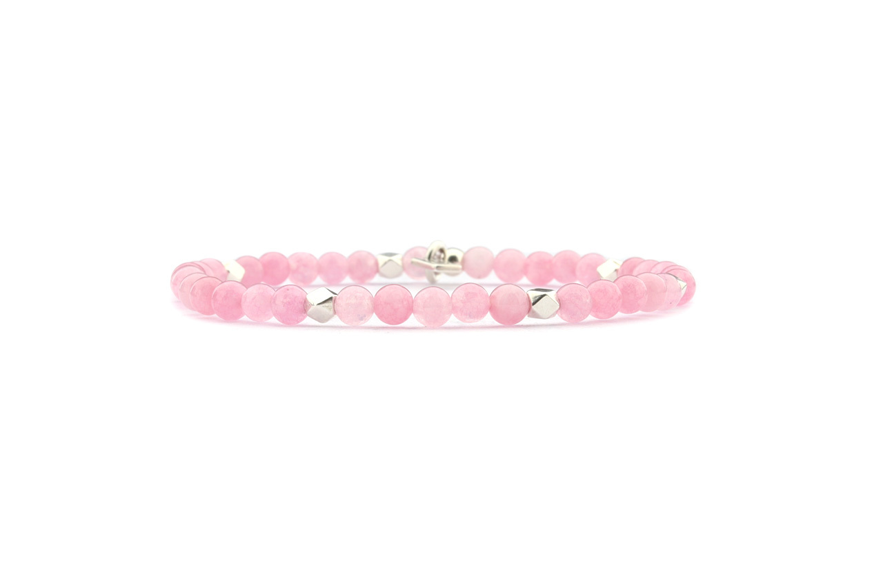 Bracelet made of natural beads of 4mm, made of elastic and provided with a metal label. The silver-colored parts are made of high quality metal.