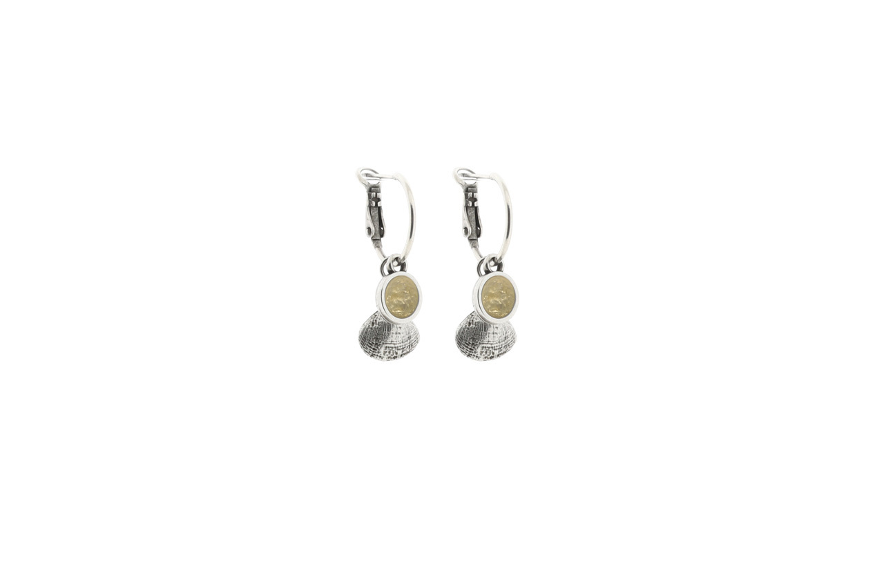 • The MARLOES earrings are made of a setting of silver-plated Zamac metal in a vintage look. A beautiful cabochon in the colour or your choice is set into it. It has a diameter of approx. 7 mm.