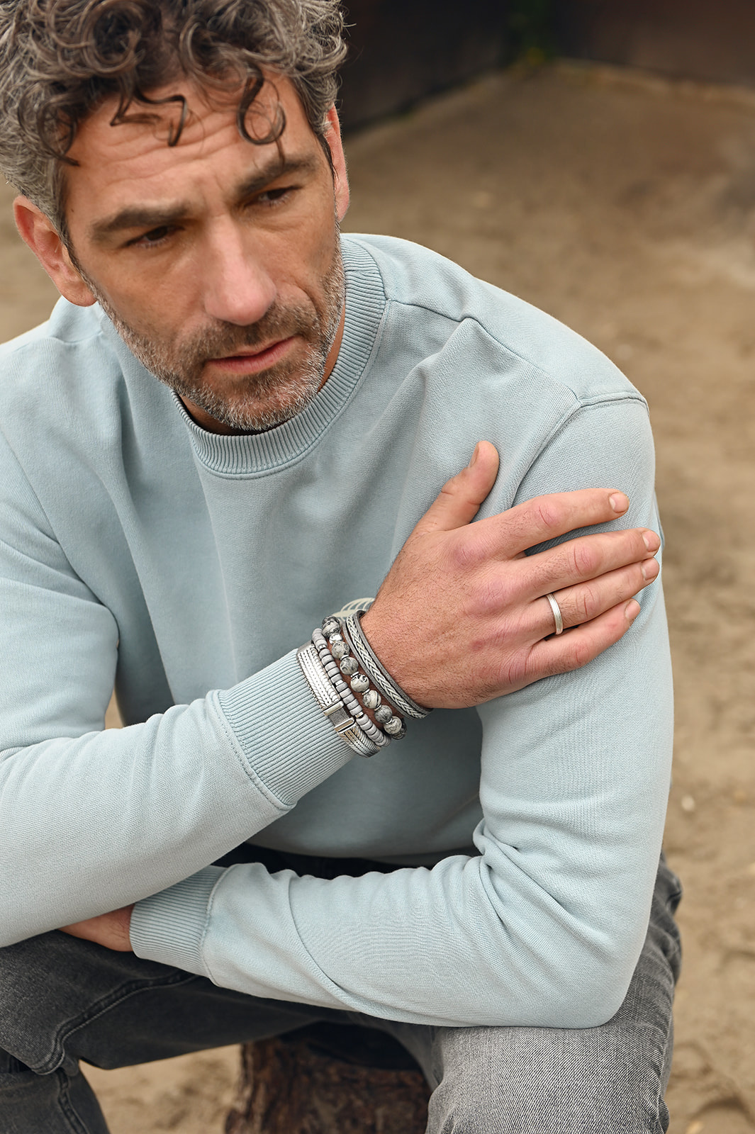 • The PIM metal men's ring is made of silverplated Zamac metal in a vintage look. The shape with the discreet striped pattern makes this ring special.