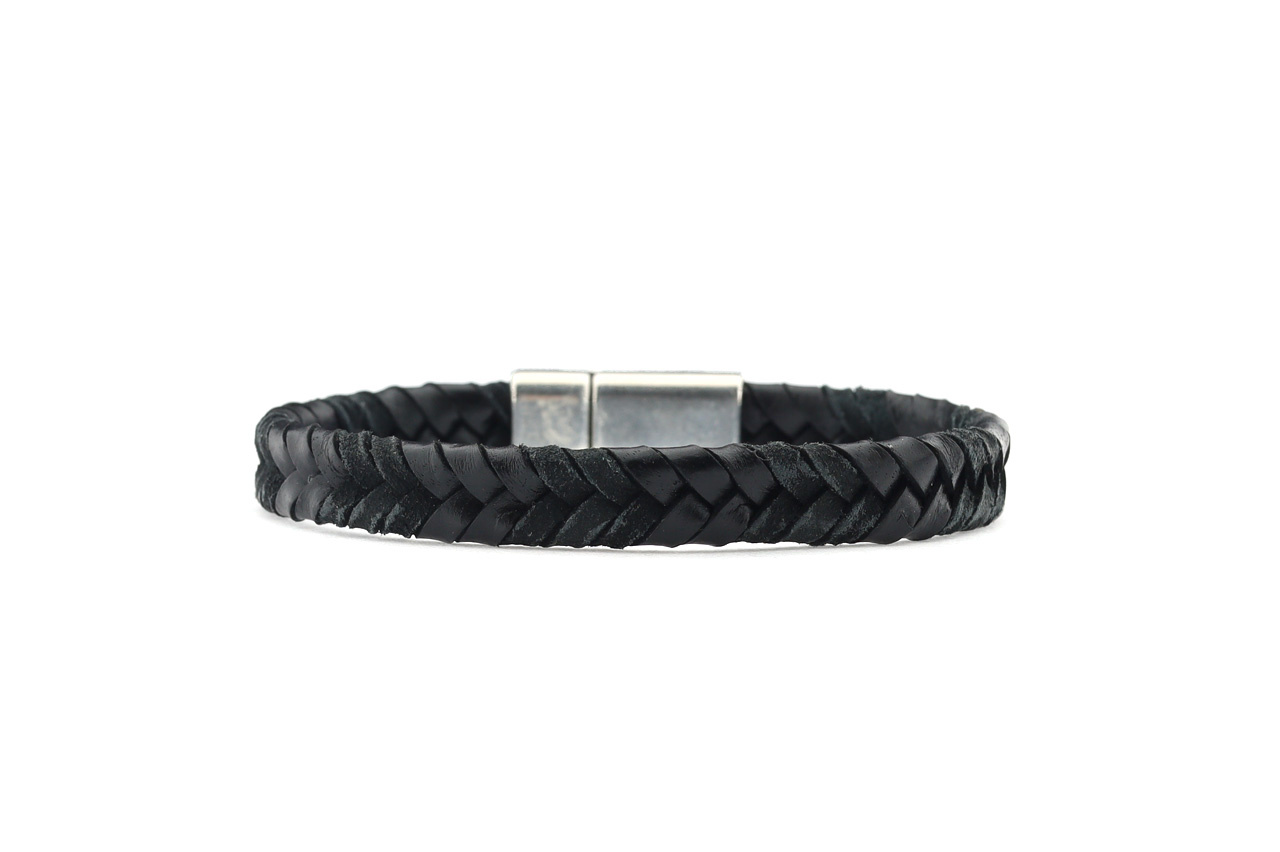 The THEO leather bracelet is made of several supple buffalo leather straps. This vintage bracelet is held in place by a magnetic clasp at the back, which is easy to operate but still offers a secure hold.The braid is approximately 10 mm wide.