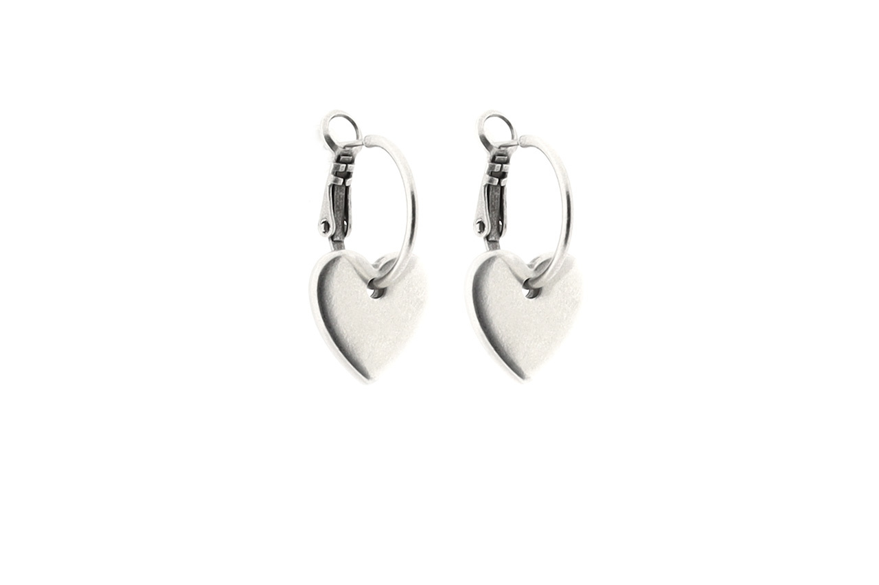 • A hoop earring with a nice heart-shaped charm of approximately 15x15 mm. The silver-colored parts are made of high-quality, nickel-free metal. Complete the set with the matching ring!