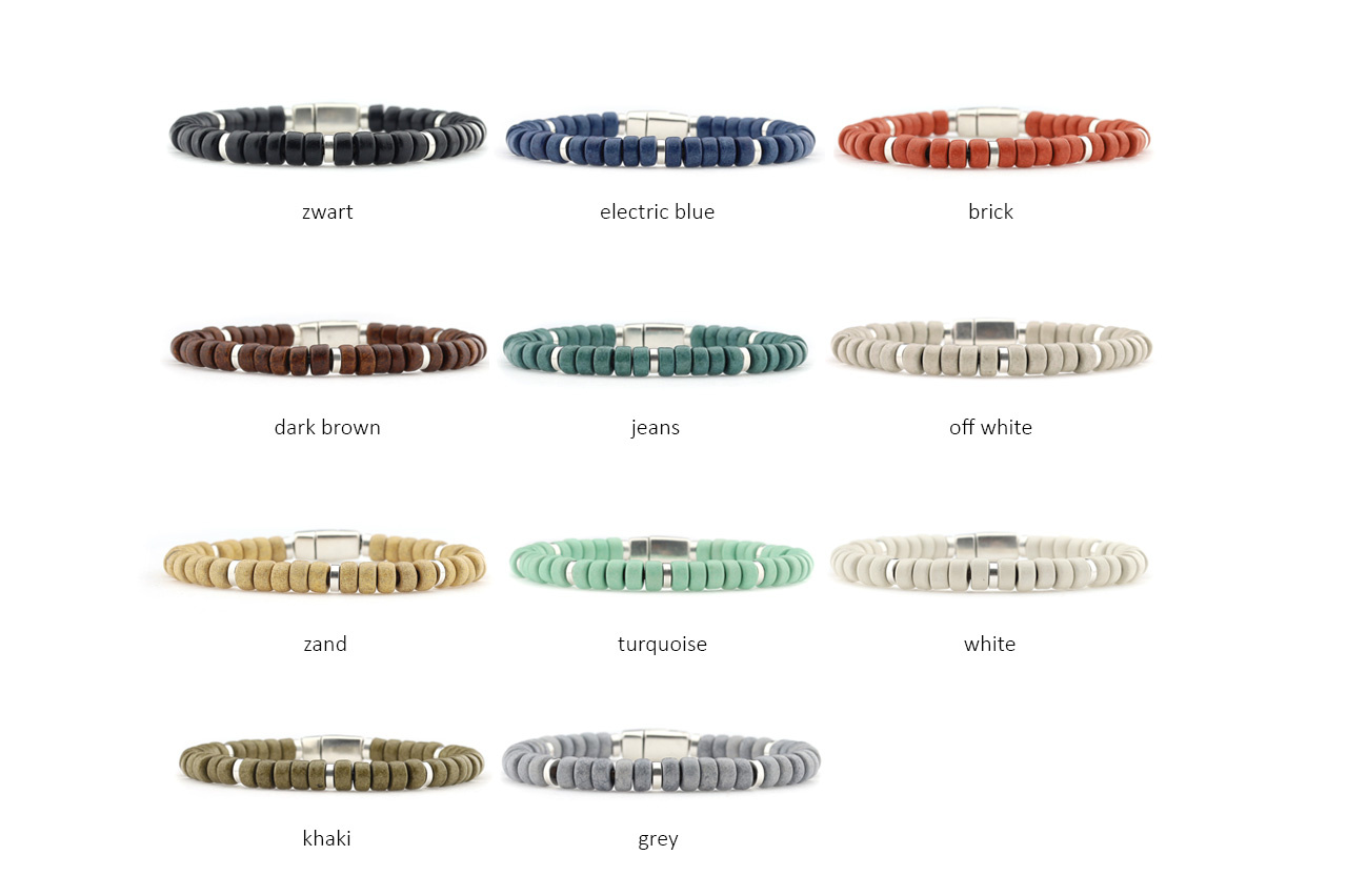 Erik is een armband met prachtige keramiek kralen van 6mm, afgewisseld met zilverkleurige kralen. Kies je favoriete kleur, er is keuze uit heel veel verschillende kleuren!