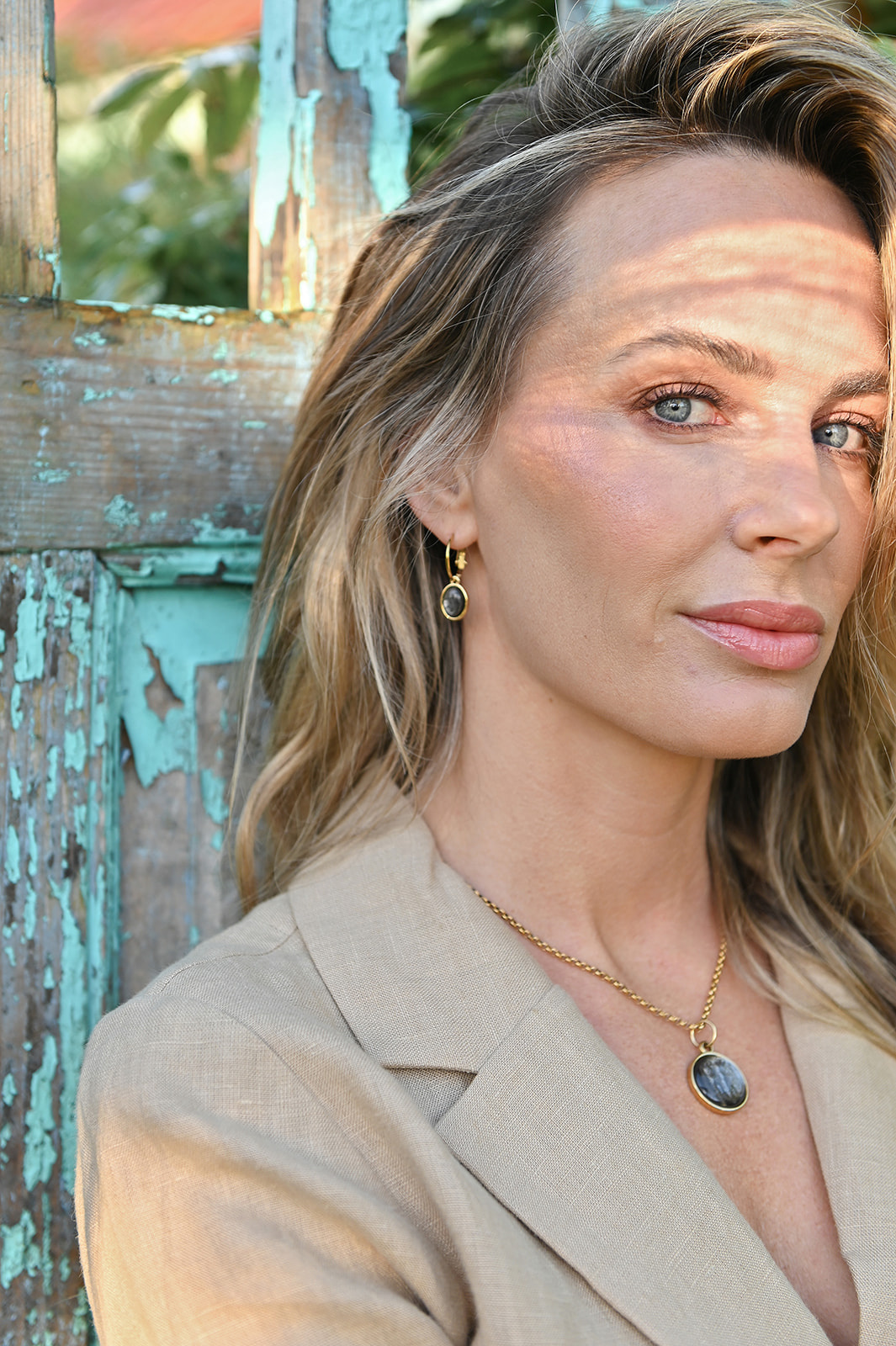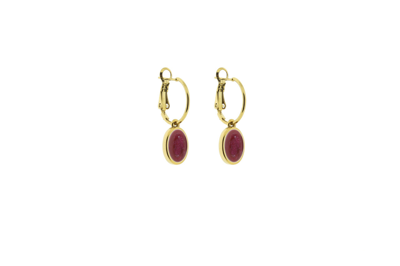 • Een oorhanger met daaraan een ovale setting met een ovale 8x10mm cabochon. De goudkleurige onderdelen zijn gemaakt van hoogwaardig, roestvrij staal. De oorbel is totaal 3cm lang.