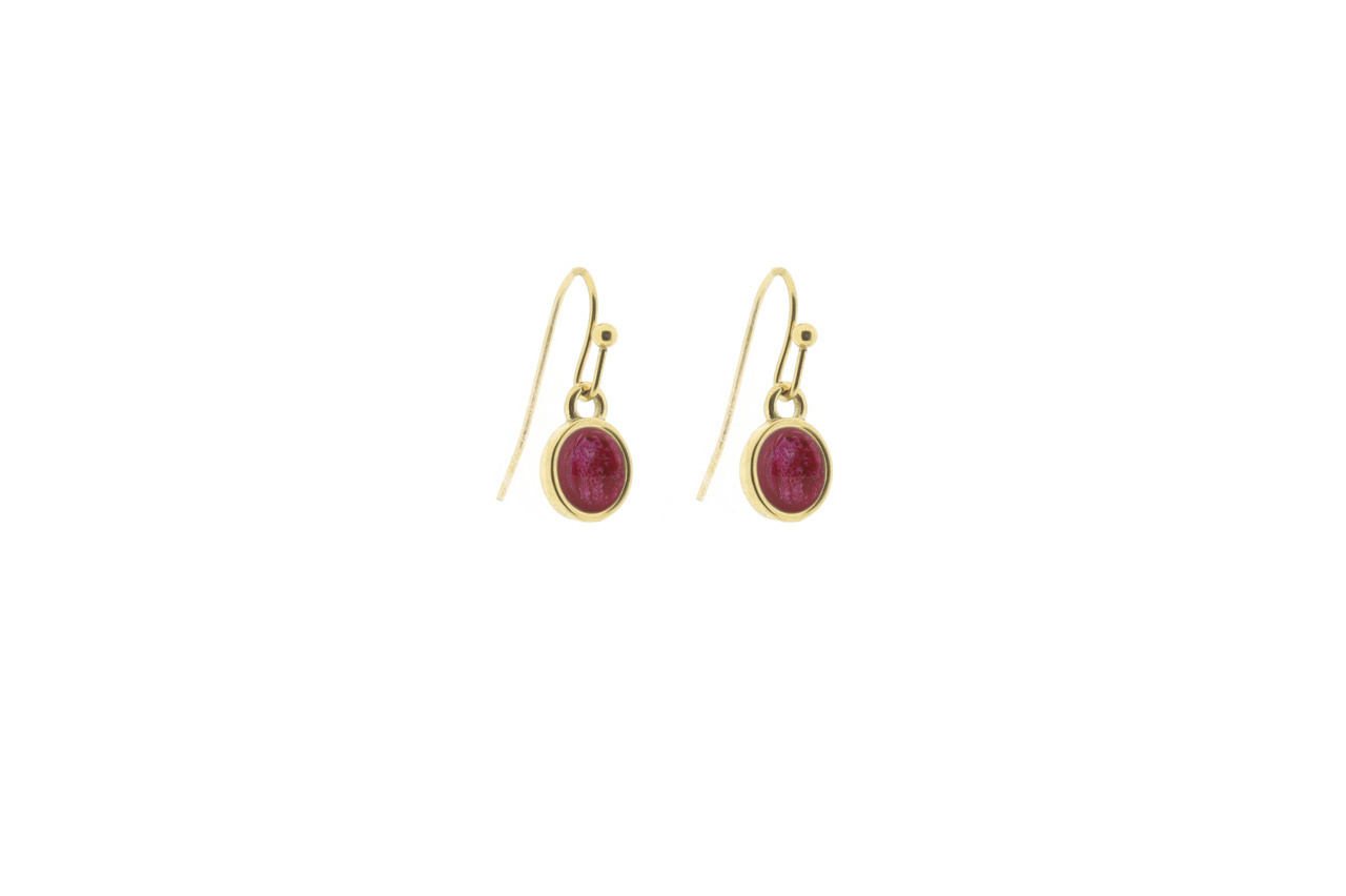 • Een oorhaak met daaraan een setting met een 7 mm cabochon. De goudkleurige onderdelen zijn gemaakt van hoogwaardig stainless steel.