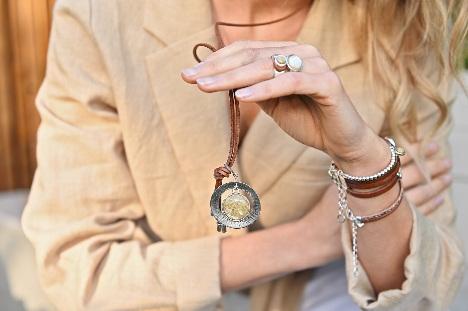 De hanger is gemaakt van zilverkleurig, hoogwaardig, nikkelvrij metaal en bestaat uit een ronde hanger met 20mm setting. De ronde hanger heeft een afmeting van ongeveer 4x4cm. Kies zelf je ketting en cabochon uit onze 15 kleuren!